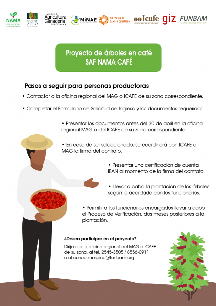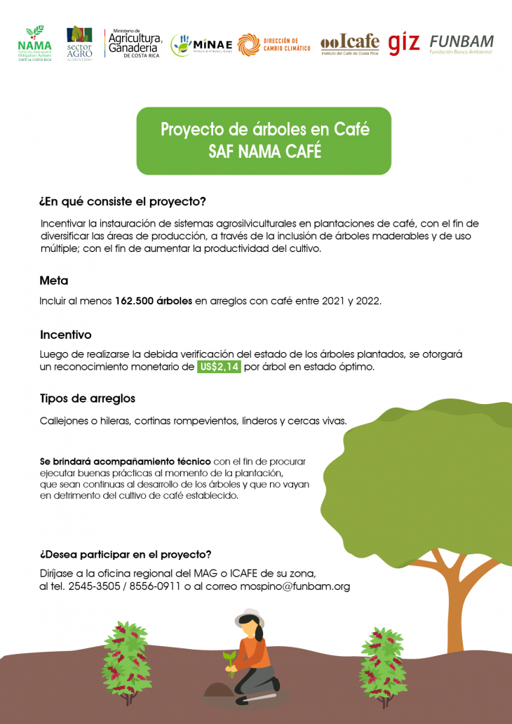 Proyecto conjunto de los socios de la NAMA Café y FUNBAM-FONAFIFO pretende colocar más de 162.500 árboles de uso múltiple dentro de las plantaciones de café del país hasta el 2022. Personas productoras podrán aplicar al incentivo por medio de las oficinas regionales del MAG o ICAFE o al 2545-3505 / 8556-0911 / [email protected].